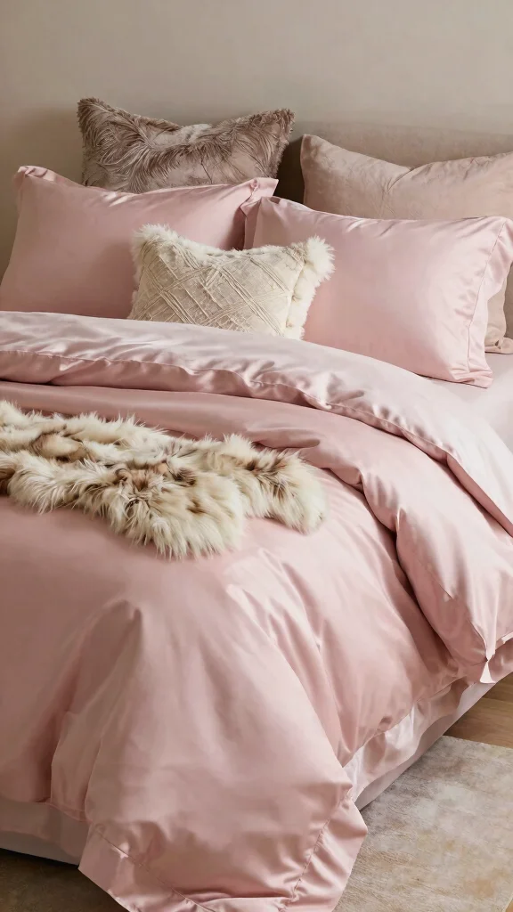 Creating a luxurious look is all about layering different textures effectively. Mixing pink satin bedding with fabrics like cotton, faux fur, or lace invites a tactile experience that makes your bed even more inviting. For example, a satin duvet can be paired with soft cotton sheets and topped with a cozy faux fur throw. This not only adds depth but also enhances your comfort as you snuggle in.