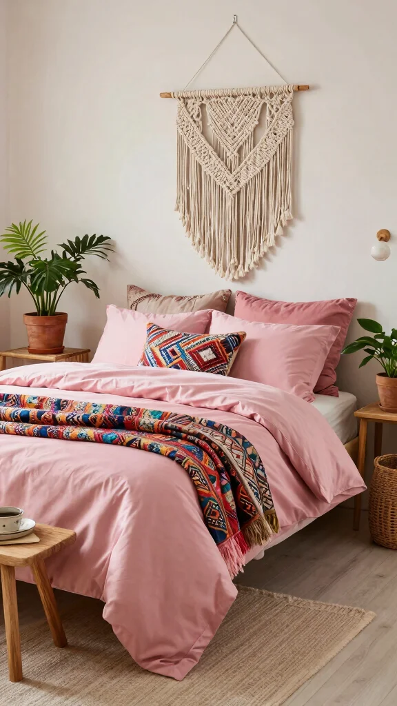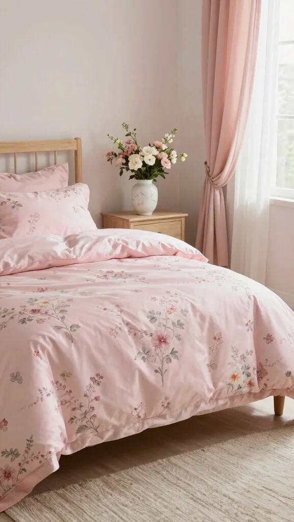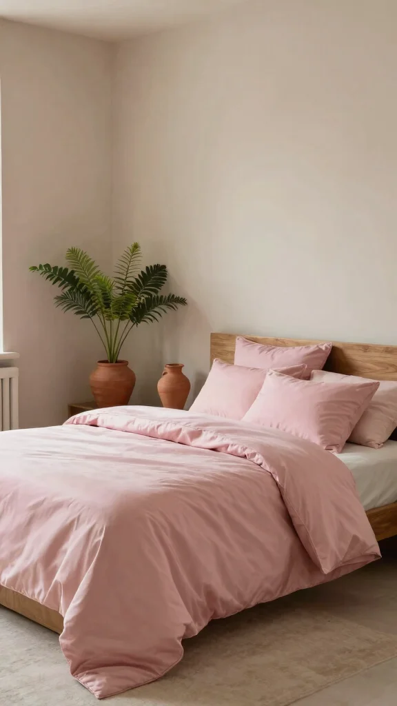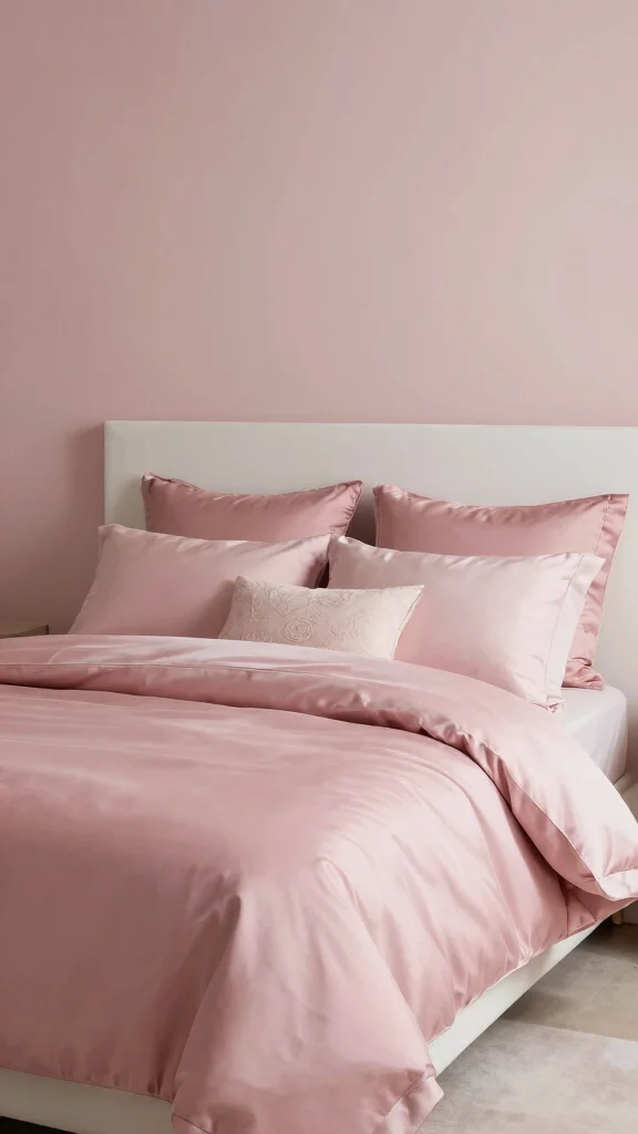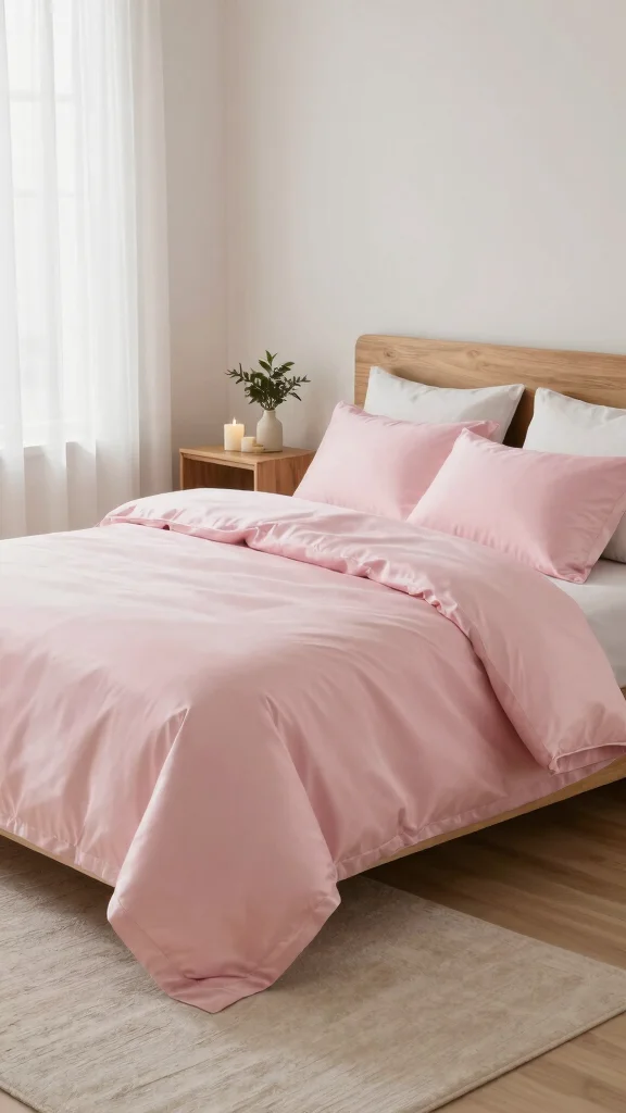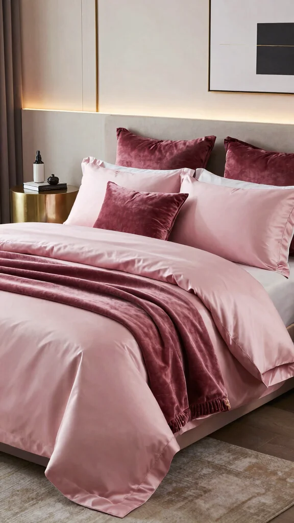 For an opulent touch, mix pink silk bedding with rich velvet accents. The softness of silk paired with the plush feel of velvet creates a luxurious atmosphere perfect for high-end decor. Choose velvet pillows or a throw in complementary colors like deep burgundy or emerald green to create striking contrast.