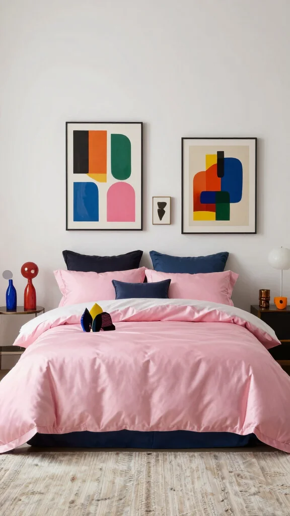 Infuse creativity into your space by incorporating artistic touches alongside pink silk bedding. Unique art pieces, colorful accessories, or vibrant rugs can contrast beautifully with the bedding, adding character to your room. Consider bold murals or abstract art on the wall to create a striking backdrop that showcases the luxury of silk.
