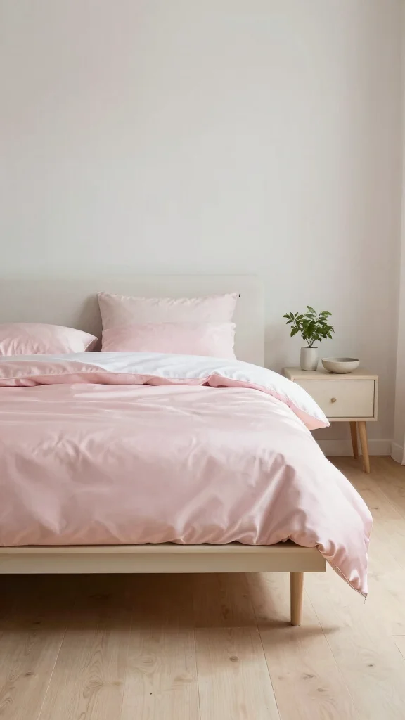 Create a serene atmosphere in your bedroom with soft blush pink silk bedding, a timeless choice that radiates warmth and charm. This gentle hue harmonizes beautifully with white or cream walls, allowing the bedding to take center stage. Consider adding a plush pink throw for extra coziness during chilly nights, enhancing the inviting feel of your space.