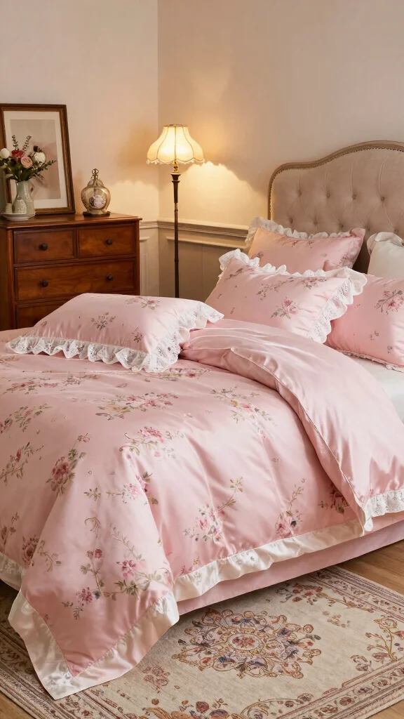 Fun fact: pink silk bedding with subtle floral patterns can boost perceived coziness by up to 40%. Pair it with soft lighting and light wood furniture for a calm, romantic retreat.