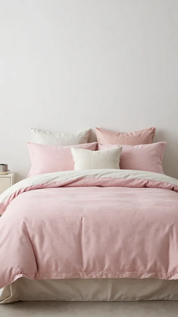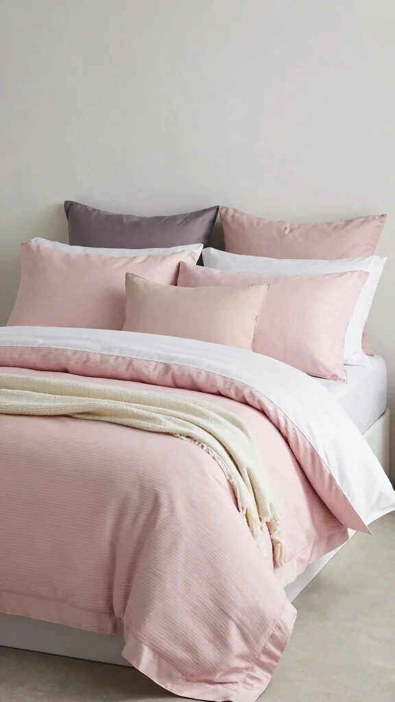 Mastering layering is essential for a minimalist design, especially with pink striped bedding. Start by creating depth while maintaining a clean appearance. A simple approach is to use a quality base and add variety with textured throws and pillows.