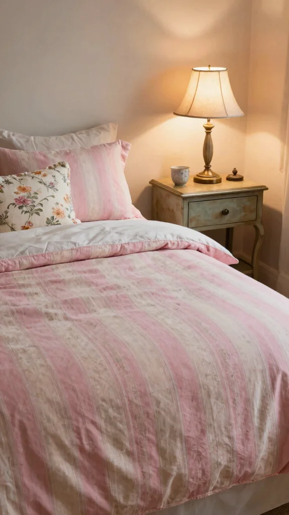 For a nostalgic touch, vintage-inspired pink stripe bedding can infuse warmth and charm into your modern space. Seek out bedding featuring softer shades of pink with slightly faded stripes for a cozy, lived-in feel. This style beautifully enhances small bedrooms, creating an inviting atmosphere that encourages relaxation.