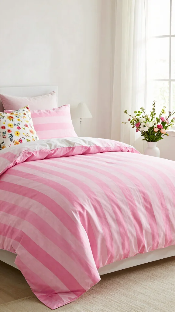 Think about how the pink stripes will blend with your bedroom decor. Are you aiming for a modern bedroom decor or a chic bedroom design? Light pinks can create a soft, calming vibe, while bold stripes add a fun twist. Look for bedding that complements your existing color palette and furniture style.