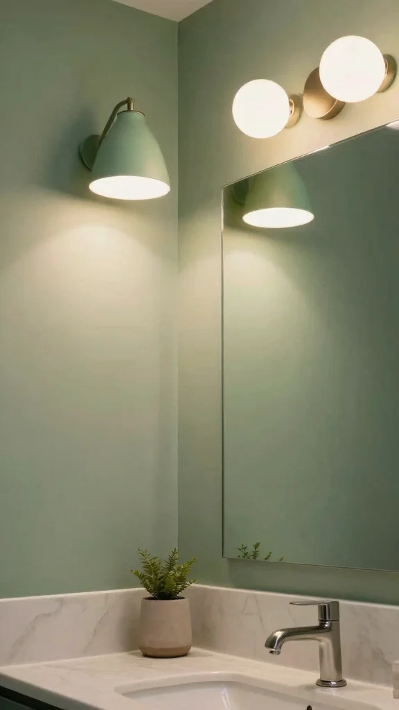 Select fixtures with matte finishes for a modern touch, and consider combining sage green with warm brass accents for added elegance. Ensuring ample light around mirrors is crucial for practicality, especially in smaller bathrooms.