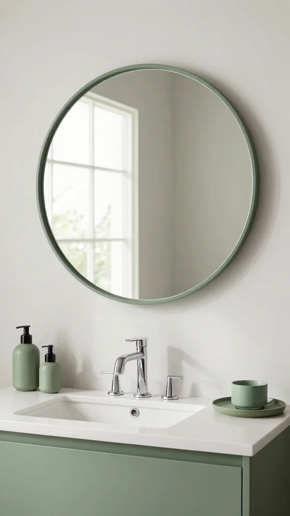 Incorporating sage green frames for mirrors elevates your bathroom decor while adding a personalized touch. This detail transforms an ordinary mirror into a stunning focal point. The right frame can enhance the overall aesthetic, making your bathroom feel more thoughtfully designed.
