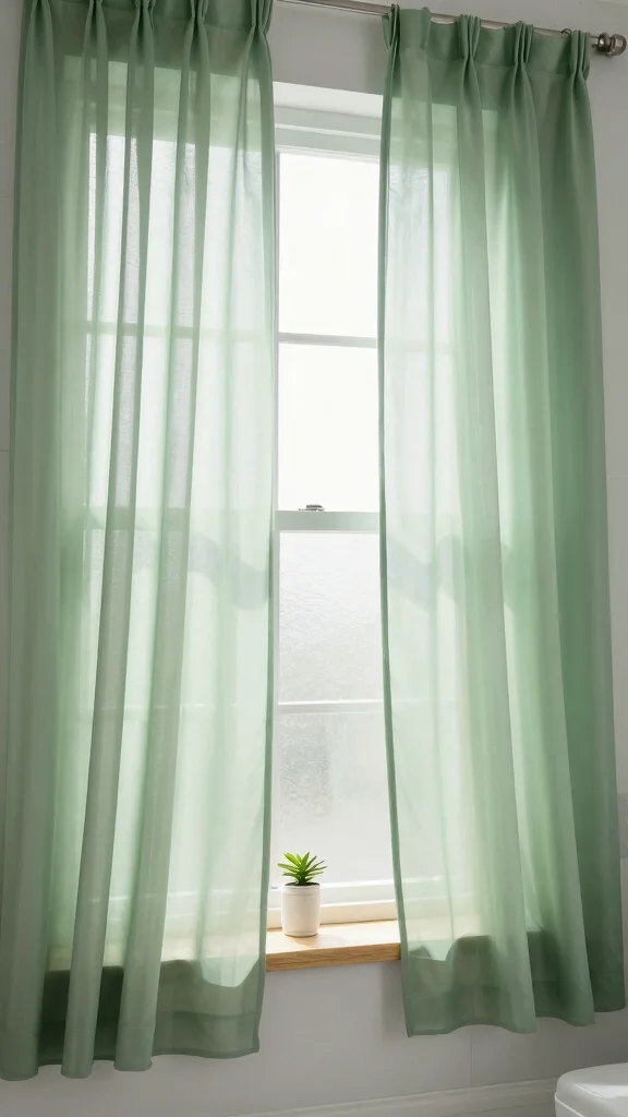 Window treatments in sage green can gently soften natural light while adding a beautiful color accent to your bathroom. Opt for lightweight fabrics to create an airy feel, allowing just the right amount of light to filter through. This choice enhances the overall ambiance, making your space feel bright and welcoming.