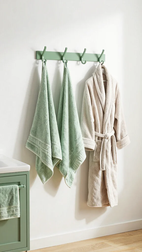 Sage green hooks and racks can add both functionality and style to your bathroom. Use them to hang towels, robes, or accessories while keeping your space organized. These small details can significantly enhance the overall decor and contribute to a cohesive look.