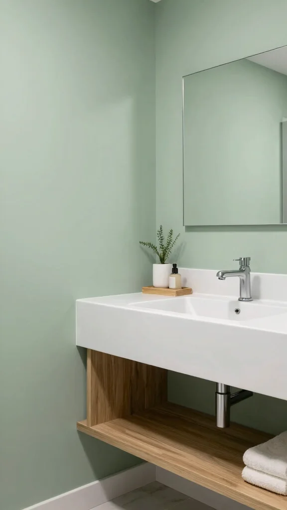 Soft sage green walls create a tranquil oasis in your bathroom, offering a refreshing backdrop that radiates calmness. This gentle hue harmonizes beautifully with natural light, enhancing the overall feeling of spaciousness. Pair it with crisp white or warm cream accents to maintain a clean and inviting atmosphere throughout the space.