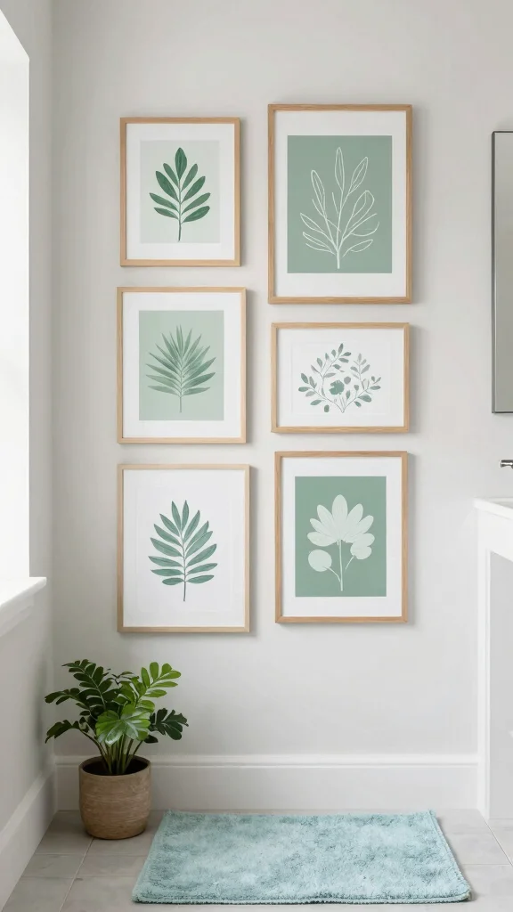 Look for nature-themed prints to emphasize a serene environment, and frame them in light wood or white frames for an open feel. A gallery wall with a mix of art sizes can add a unique touch and personal flair to your space.