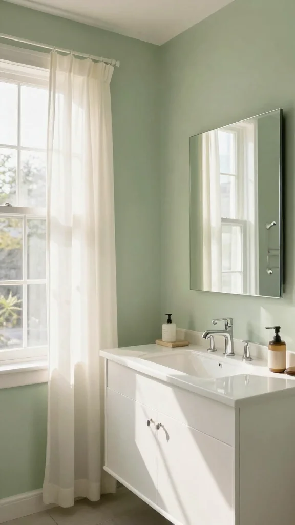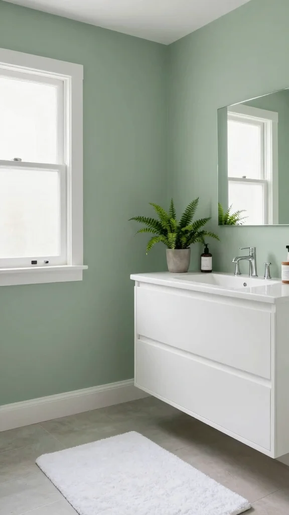 Transforming your bathroom with soft sage green walls can create a peaceful oasis. This gentle hue has an incredible ability to uplift the atmosphere, offering a calming backdrop for your daily routines. Pairing sage green with crisp white trim and vibrant accents, such as colorful towels or decorative elements, enhances the overall freshness and lightness of the space.