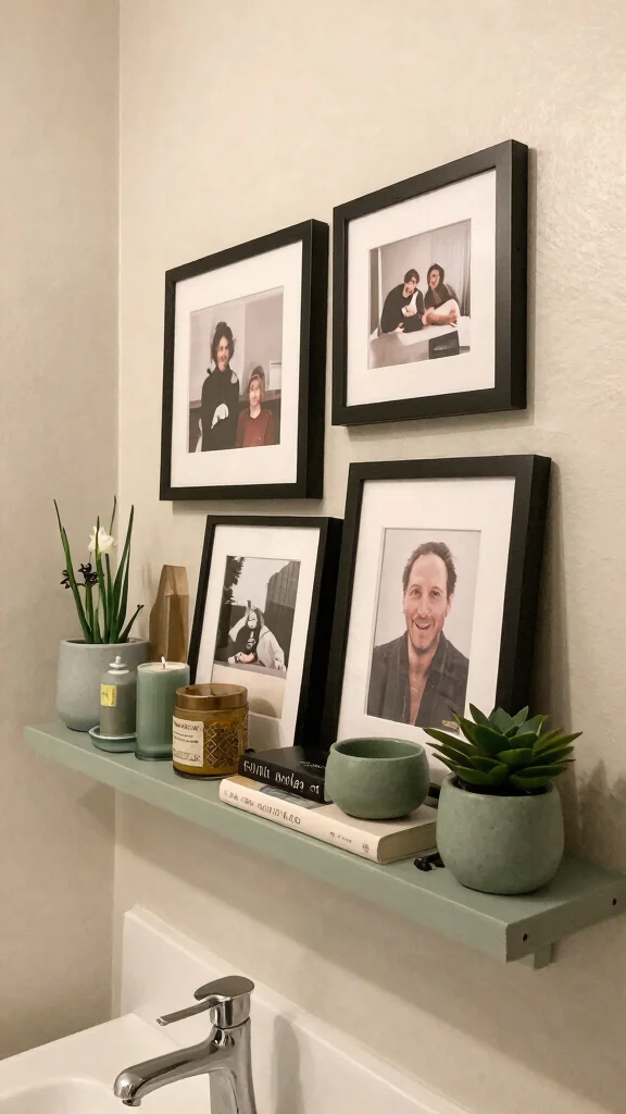 Incorporate framed photos on shelves or walls to create a warm and inviting atmosphere. You might also include decorative items that showcase your personality, like books or travel souvenirs. These elements can transform a generic bathroom into a personal oasis, making it a space where you truly feel at home.