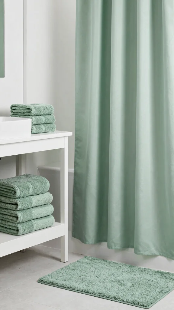 To create a cohesive look, consider luxe bath towels in sage green paired with classic white for a crisp appearance. A plush sage bath mat can add comfort underfoot, while modern shower curtains featuring geometric patterns can provide a contemporary vibe. Mixing textures and patterns will keep your design engaging and layered.