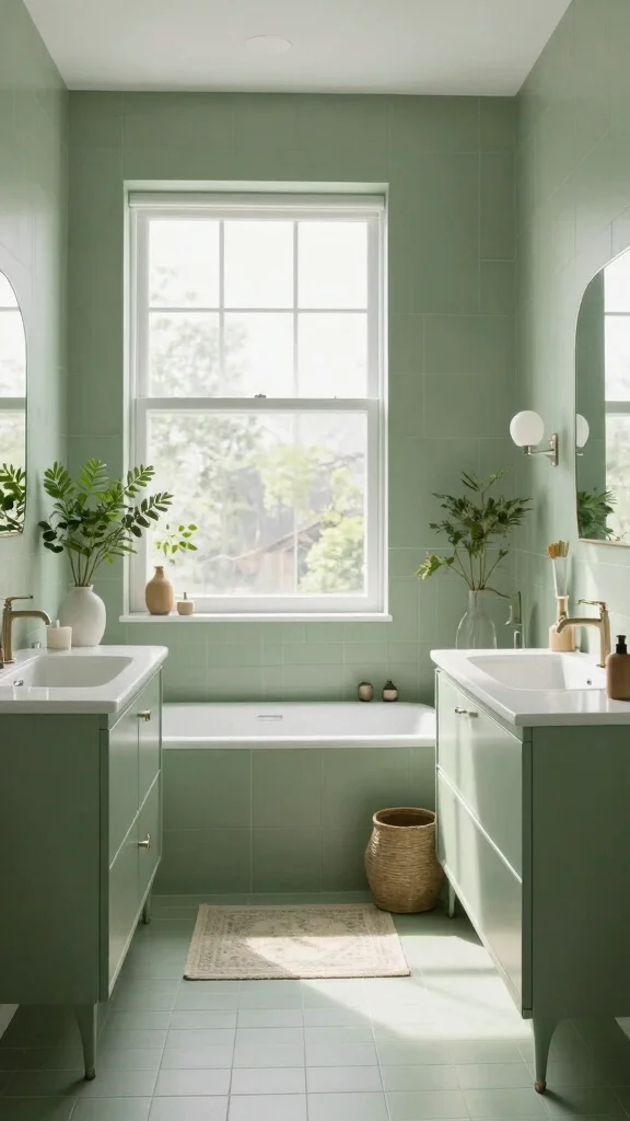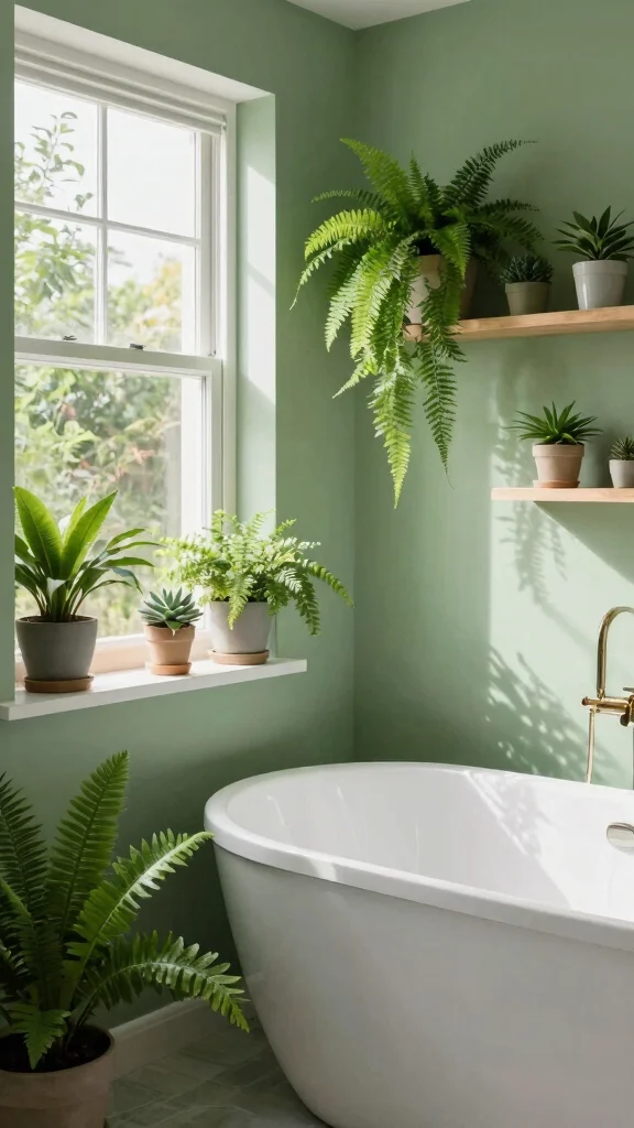 Incorporating plants not only ties in with the sage green palette but also creates a refreshing atmosphere that enhances your bathing experience.