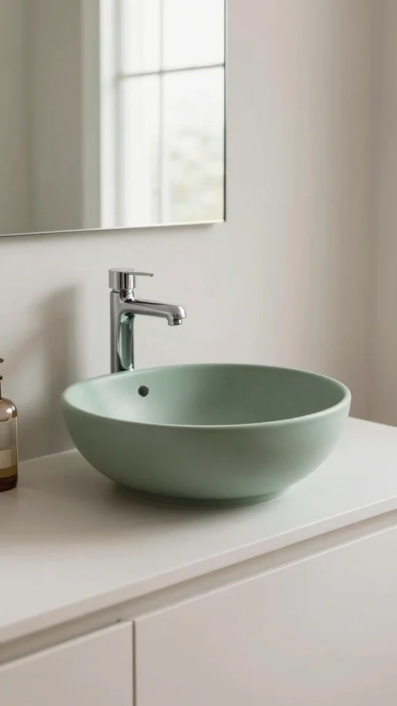 – Choose a sleek sage green sink with a chrome faucet.