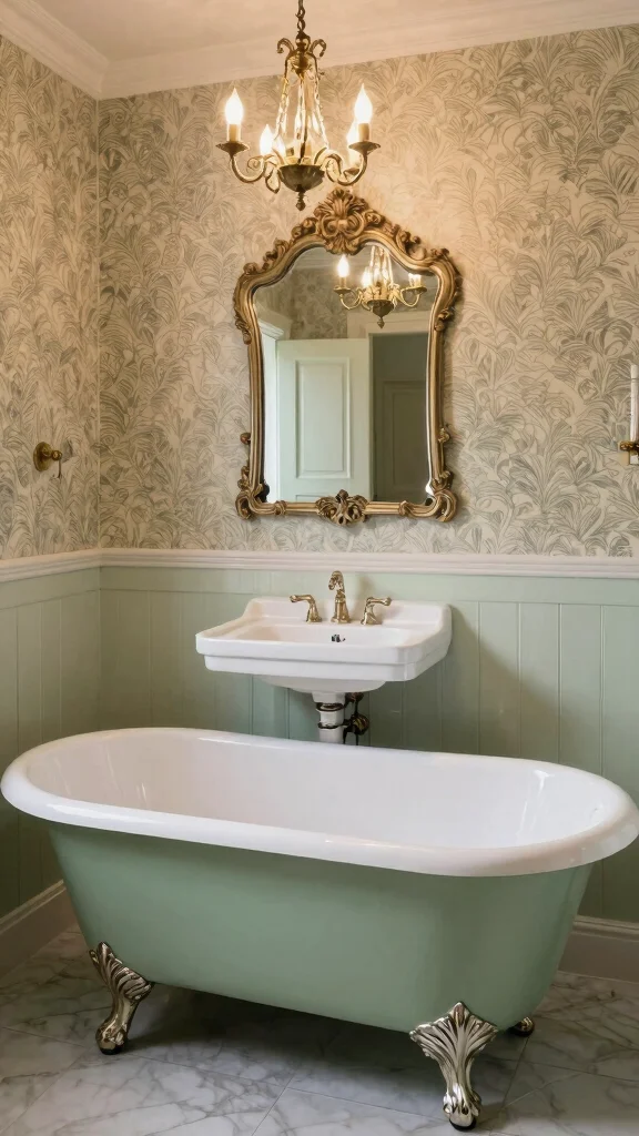 To incorporate vintage accents, look for tile patterns in sage green that evoke classic charm. Opt for ornate light fixtures to maintain that vintage vibe, and consider mixing modern pieces with vintage finds for an eclectic twist. This blend allows for a nostalgic charm that makes each visit to your bathroom feel special.