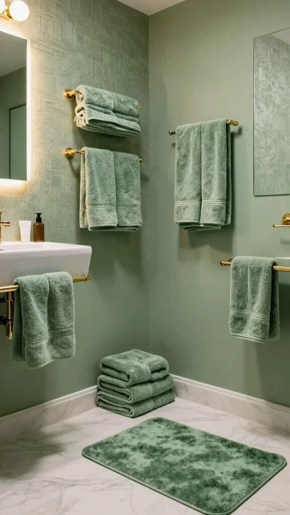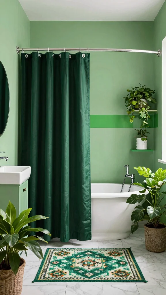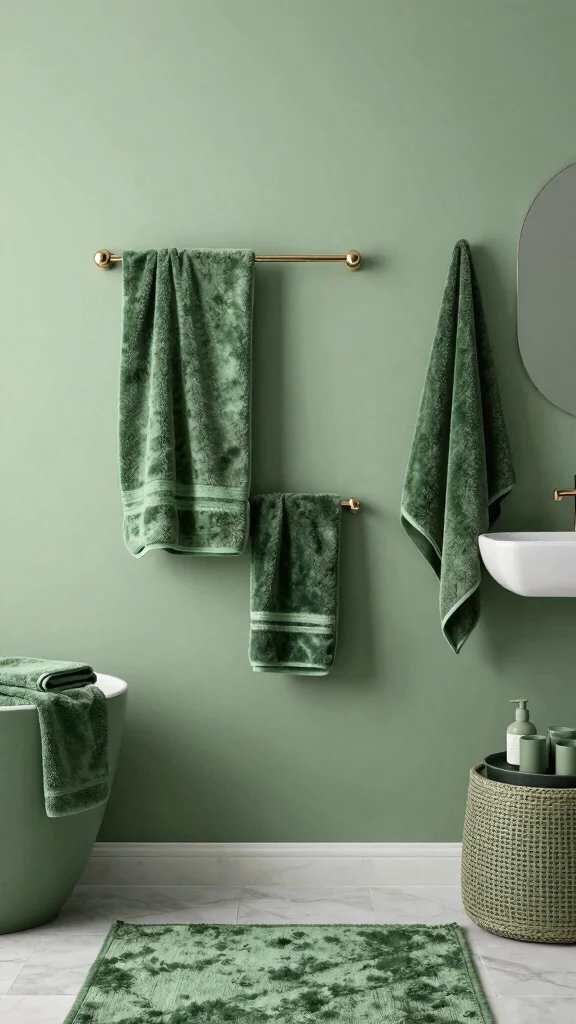 – Use different shades of green for towels, rugs, and decor items.