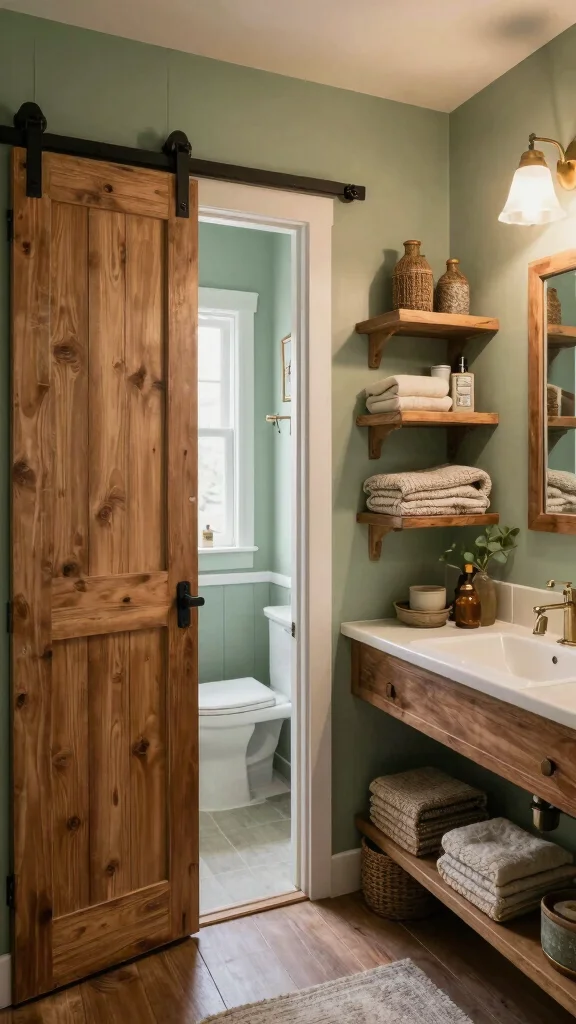 To maximize this rustic appeal, consider adding wood-framed mirrors or charming wicker baskets for extra storage and visual interest. Pairing wood with sage green allows for a seamless connection with nature, promoting a peaceful ambiance. Here are some tips to enhance this look: