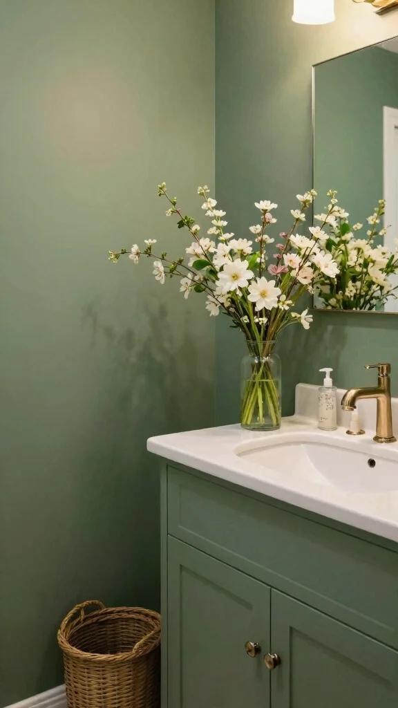 Infuse your sage green bathroom with seasonal cheer through decor that evolves throughout the year. Adding small touches that reflect the season, like fresh flowers in spring or autumn-themed towels, keeps your space feeling vibrant.