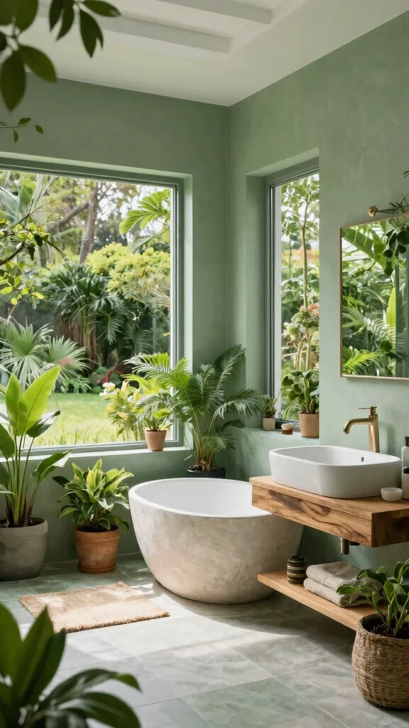 Create a seamless connection between your bathroom and nature with outdoor-inspired designs. Use shades of sage green alongside natural stone or wood to evoke the serenity of a garden.