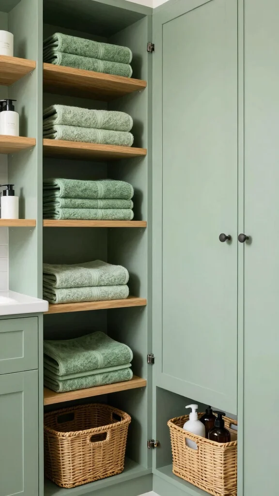 Utilizing sage green storage options ties everything together, creating a cohesive aesthetic while remaining practical. Integrate vertical storage solutions to maximize space and maintain tidiness.