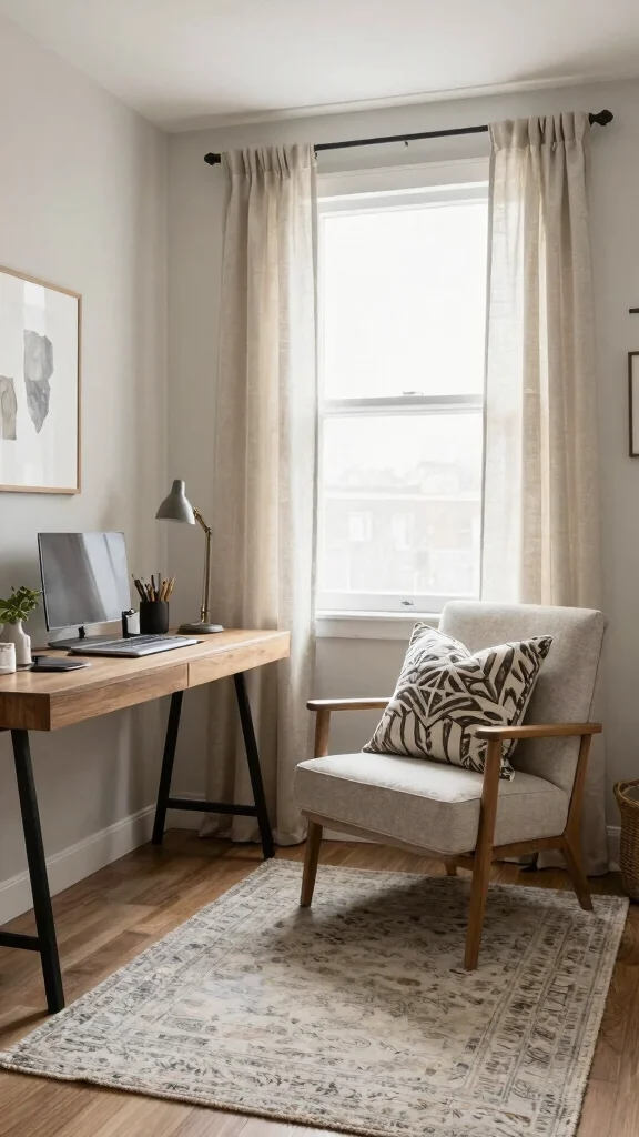 Textiles can infuse warmth and personality into your small home office. Consider incorporating textiles such as curtains, rugs, or cushions to create a cozy atmosphere. These elements provide comfort, especially if your workspace is located in a frequently used area of your home.
