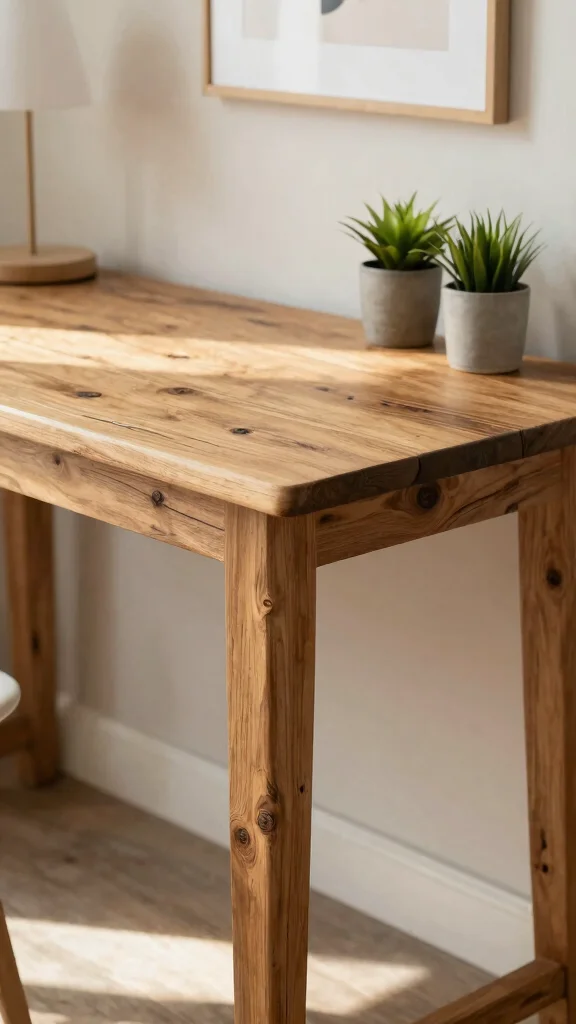 – Pair a reclaimed wood desk with a neutral chair for a balanced look.