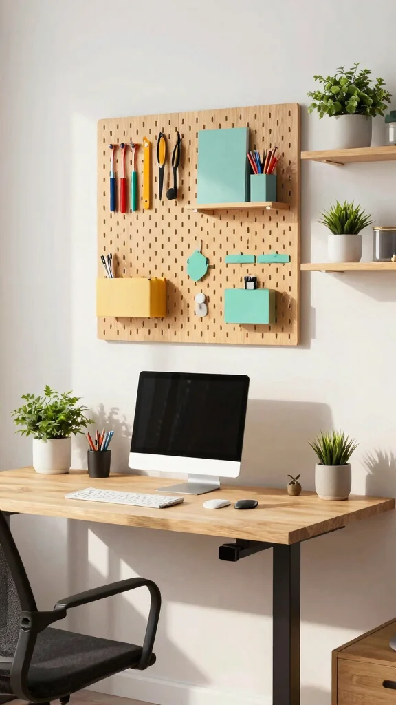 Maximizing wall space creatively can enhance your standing desk home office’s functionality. Installing pegboards for hanging office supplies or shelves for books and decorative items saves desk space while adding an artistic element. Choose colors and textures that complement your work area to maintain a cohesive look.