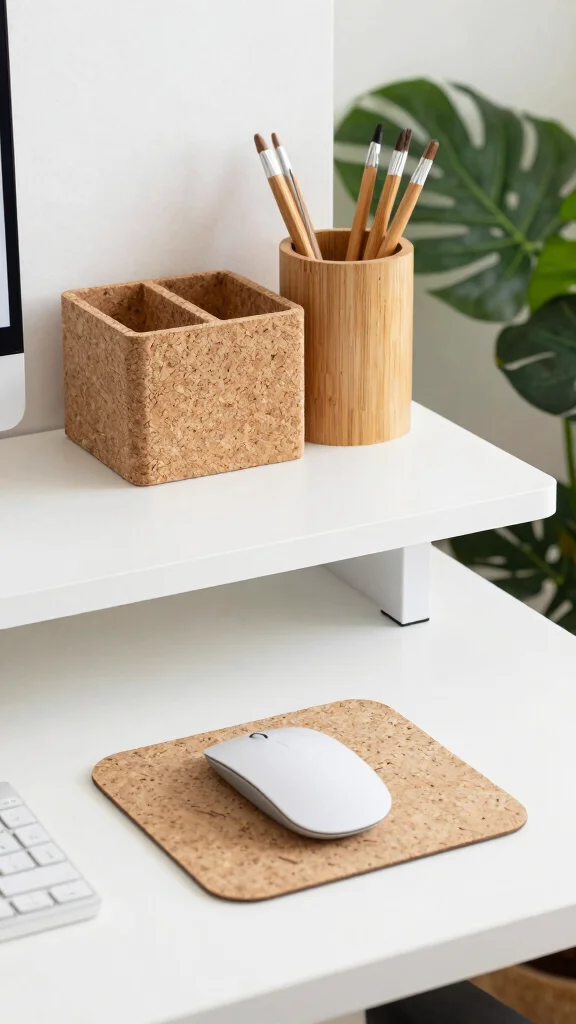 Did you know that switching to eco-friendly desk accessories can cut waste by 30% in a year? Choose corkboard made from recycled cork and bamboo organizers to keep your standing desk home office organized, stylish, and more sustainable.