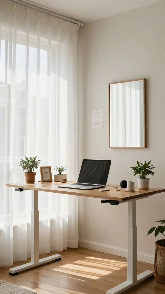 Maximizing natural light in your home office can significantly enhance your mood and productivity. Positioning your standing desk near a window allows sunlight to flood the space, reducing eye strain and improving focus. If windows are limited, mirrors can reflect light and create a sense of openness. Sheer curtains can soften harsh sunlight while still letting in plenty of daylight, creating an inviting atmosphere.