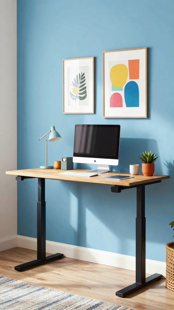 The colors you select for your standing desk home office can have a profound impact on your mood and productivity. Shades like blue can evoke calmness and concentration, while yellow stimulates creativity and energy. Infuse these colors into your workspace through paint, artwork, or accessories. An accent wall in a vibrant hue can create an eye-catching focal point, while softer tones maintain tranquility in a busy environment.