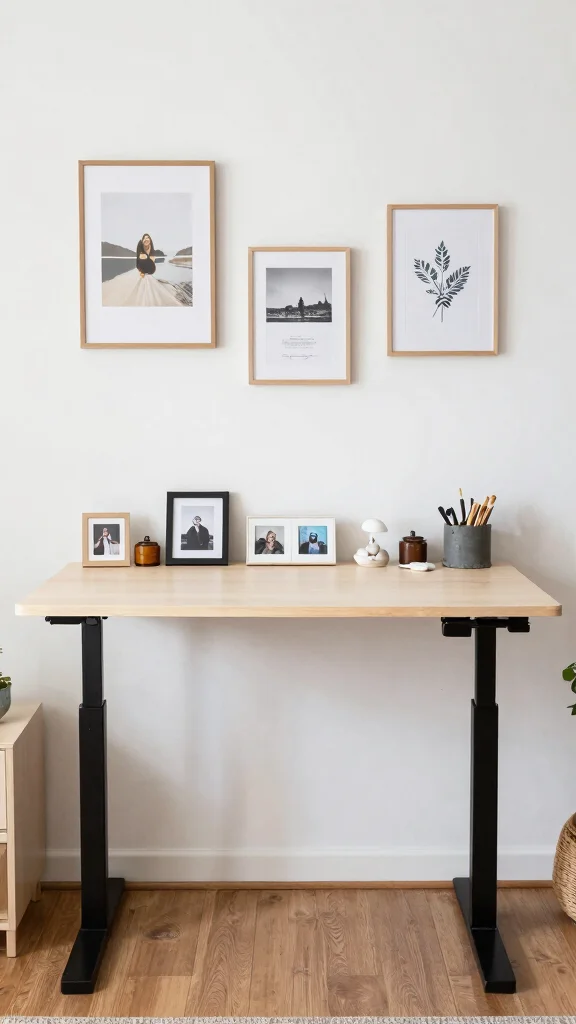 Incorporating personal touches into your standing desk home office can boost motivation and make the space feel inviting. Display photos, artwork, or meaningful pieces that resonate with you to create a personalized atmosphere. Shelving provides an excellent opportunity to showcase your personality while keeping your desk clutter-free. Choose decorative elements that are both visually appealing and significant to you, like travel souvenirs or beloved plants.